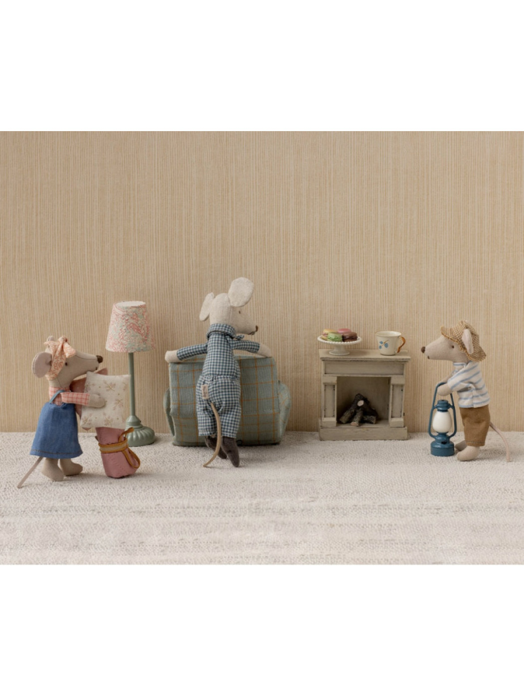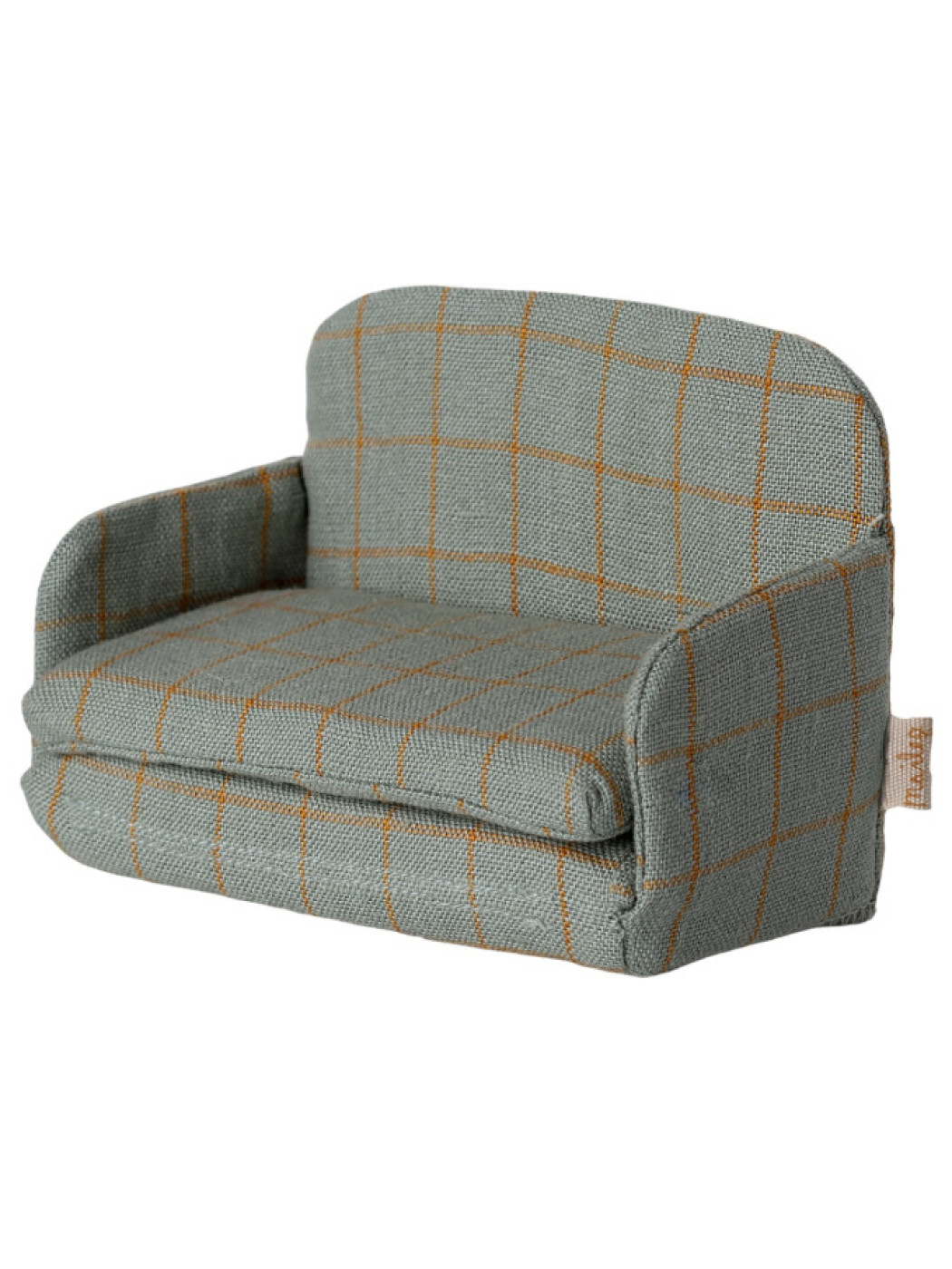 ¿Buscas una solución práctica para tu familia de ratones? Este sofá se puede convertir fácilmente en cama, ya que se despliega. Está fabricado con un material suave para sentarse cómodamente. Es un elemento perfecto para la sala de estar SuitCasa.