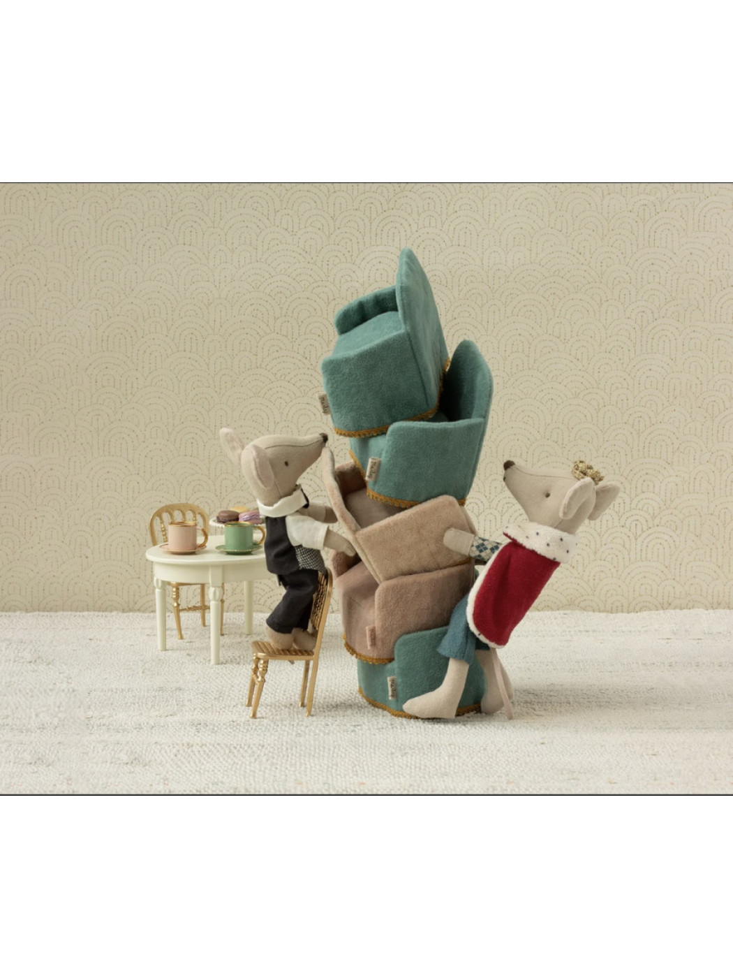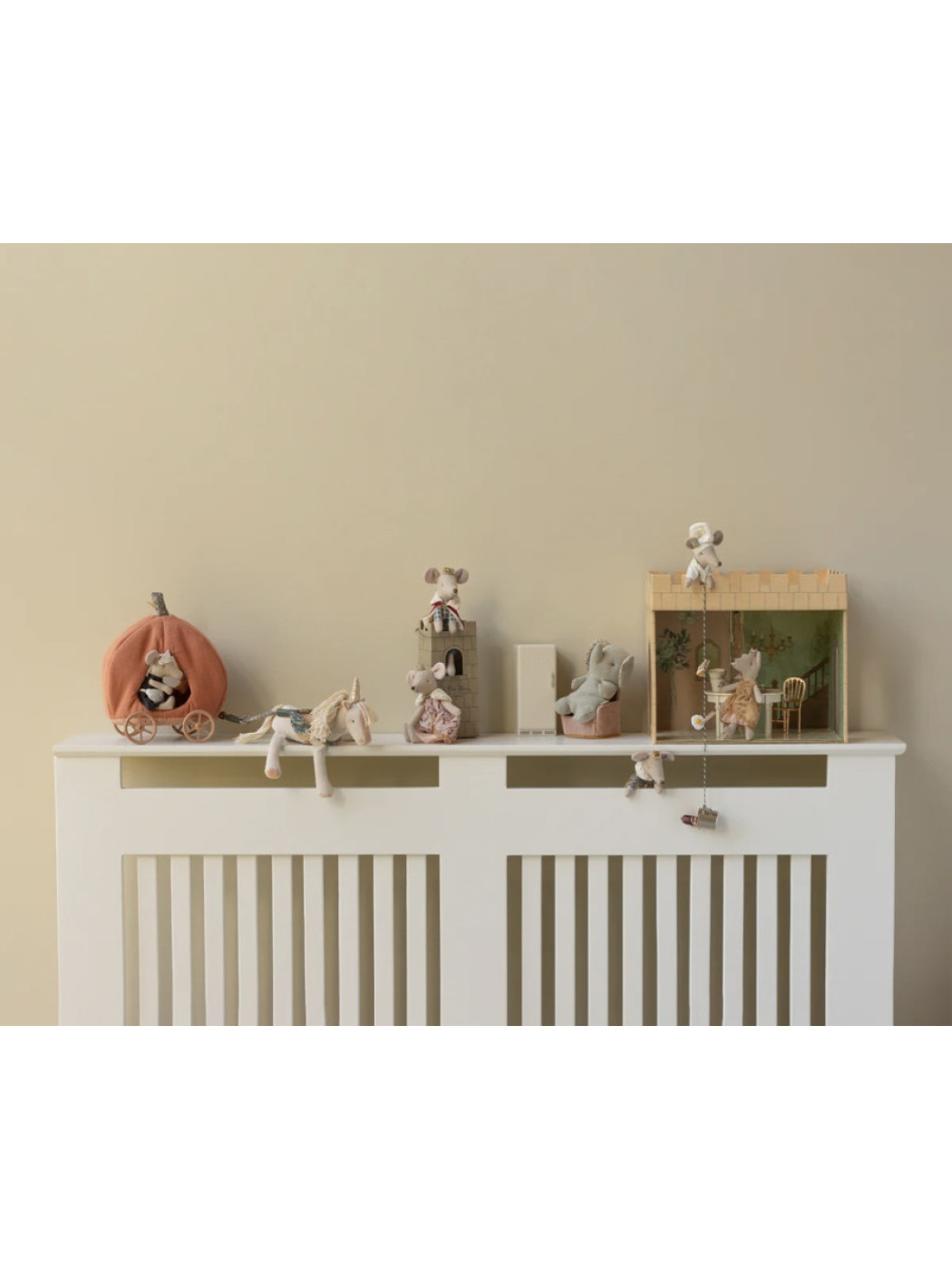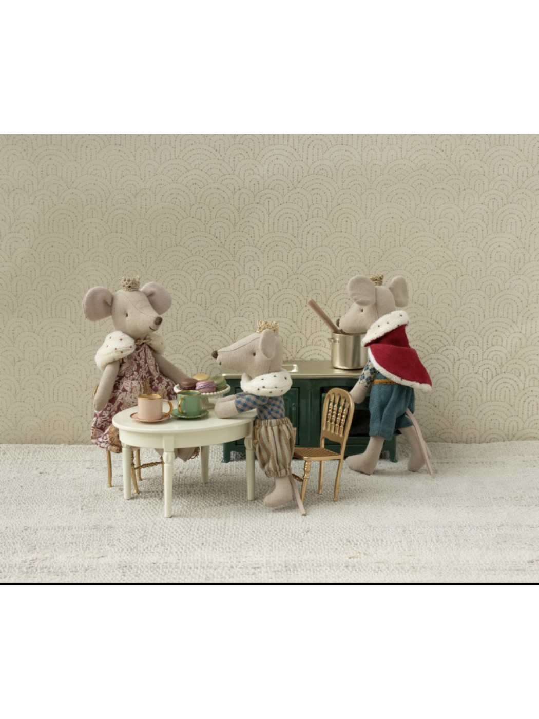 El Rey ratón en tamaño papá está listo para ser el anfitrión de su castillo. Lleva una capa y la corona, y encaja perfectamente en el salón del castillo.